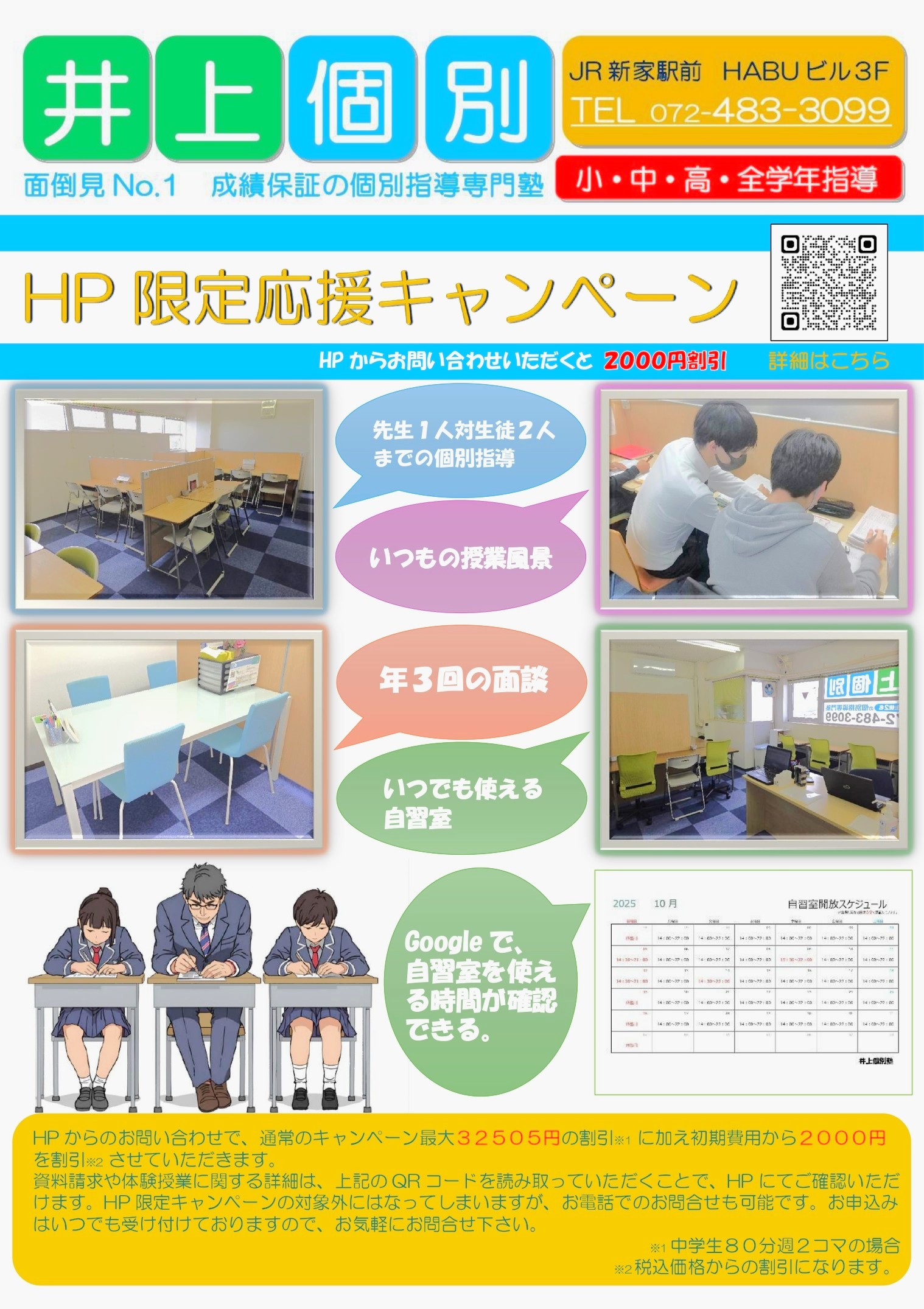 リーズナブルな料金の個別指導学習塾なら、泉南市新家の【井上個別塾】